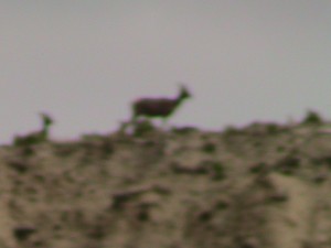 We ate, Rangel had a hot chocolate and I was cleaning up. “Dad, is that a BEAR?” Rangel asked in an excited, but somewhat scared tone. Sure enough, she had just spotted a grizzly bear quietly moving across the ridge in front of us from our left to our right. Here is a picture of the ridge.