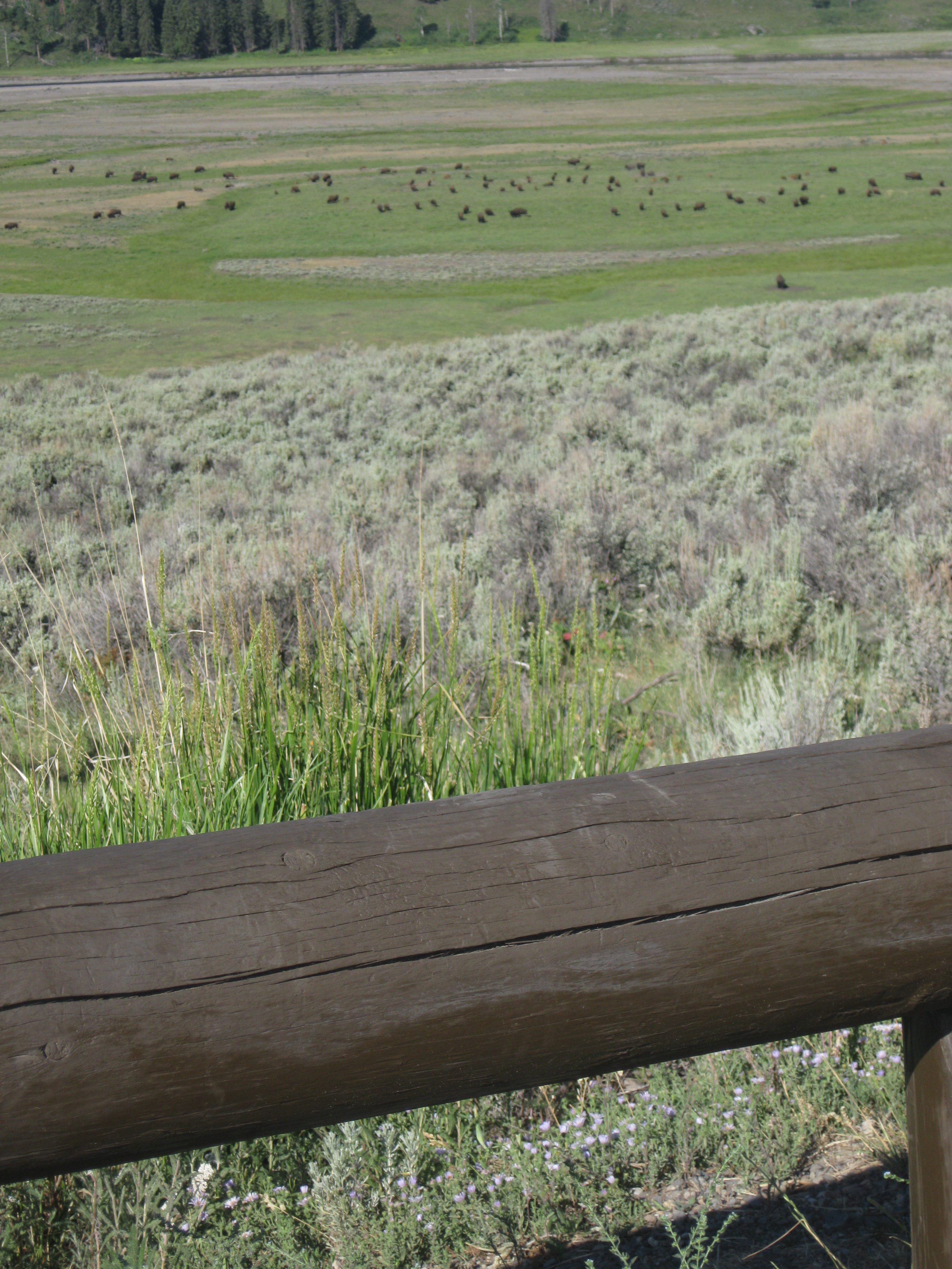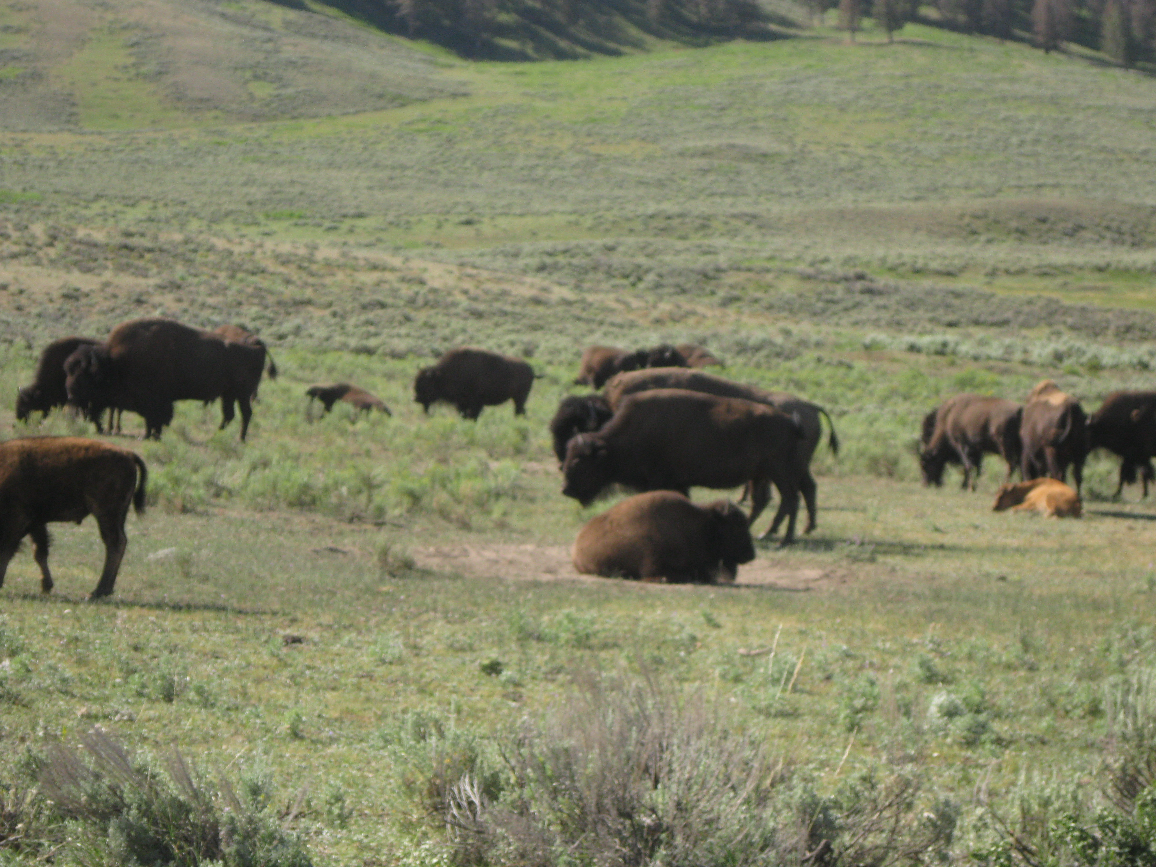 After the hike we headed West to the Lamar River Valley, a wide valley with a river running through the middle. We parked alongside the road overlooking a herd of Bison (Buffalo).
