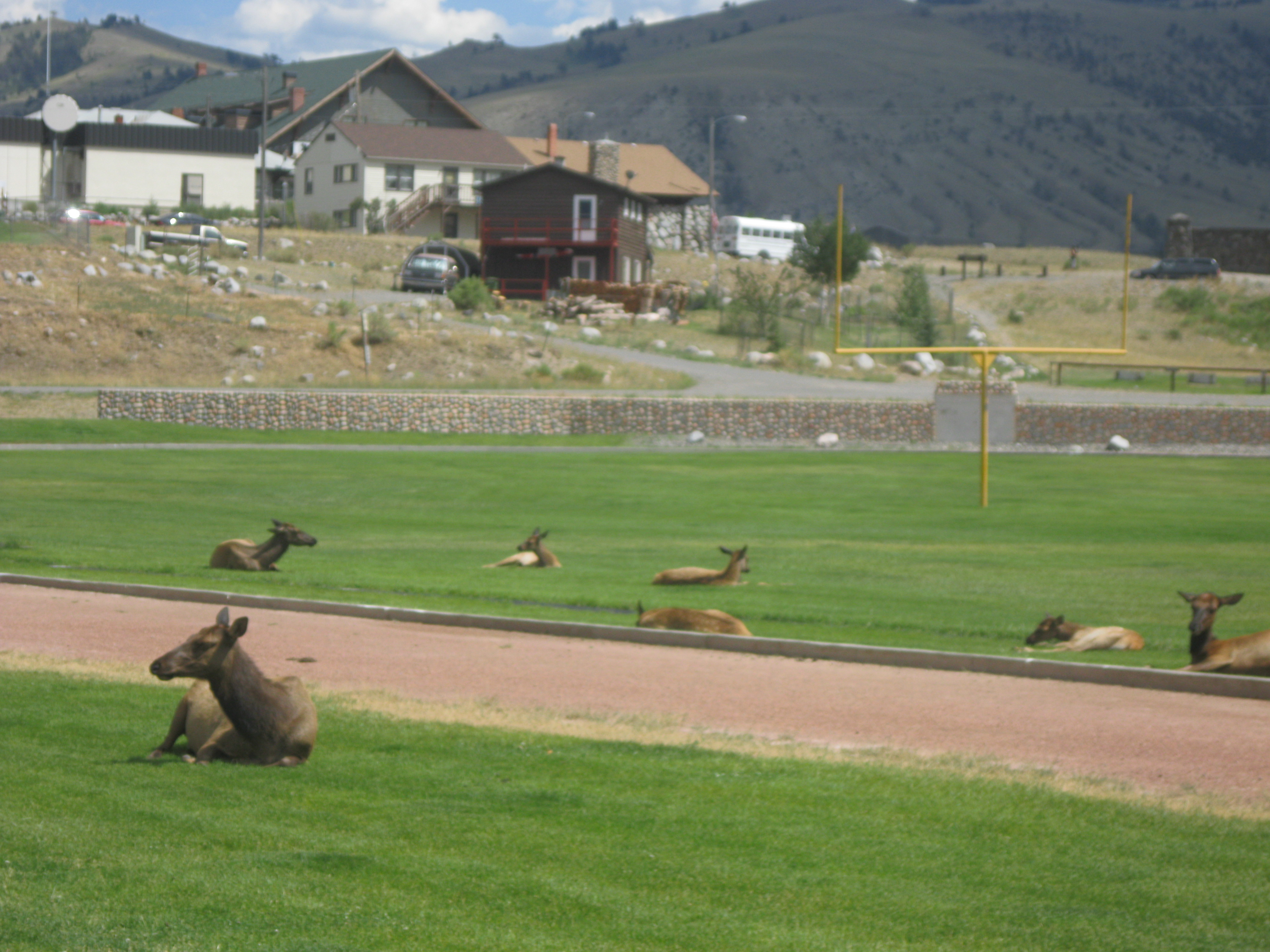We arrived in Gardner with 20 minutes to grab a key chain and check in for our overnight rafting trip down the Yellowstone River. Check out the lazy bums on the Gardner High School football field.